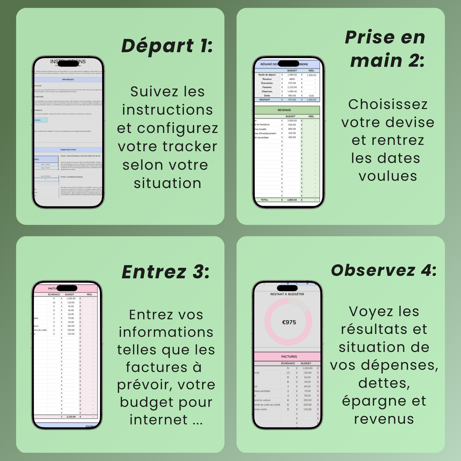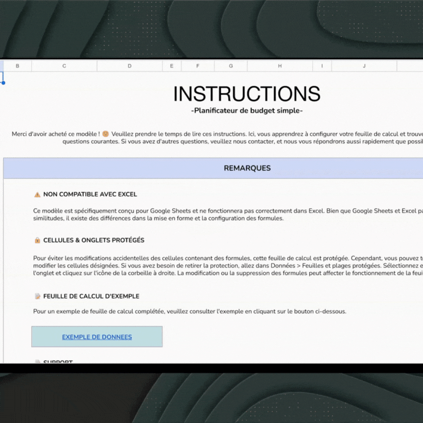 Accès instantané ! Immédiatement après votre achat, vous recevrez un email de confirmation contenant un lien pour accéder à votre planner Ekonom™. Vous y trouverez également les instructions simples pour en faire votre propre copie sur votre compte Google personnel.