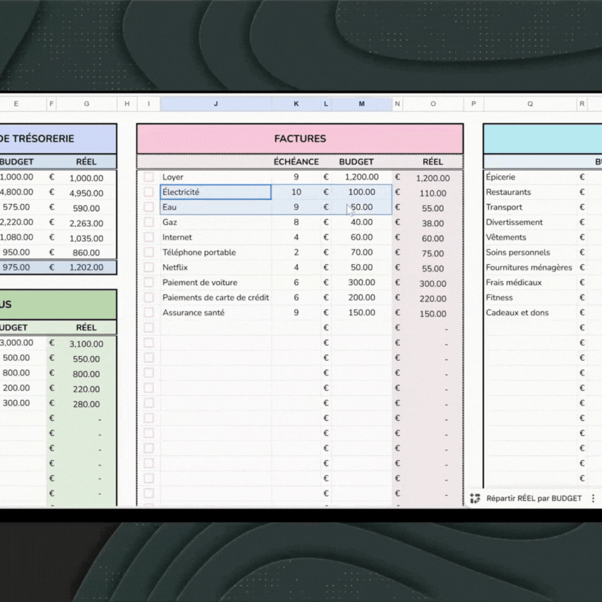 Oui, tout à fait. De nombreux couples l'utilisent pour gérer leurs finances communes. Il vous suffit de centraliser tous les revenus et toutes les dépenses du foyer dans l'onglet de suivi. Le tableau de bord vous donnera alors une vision claire de la situation financière globale de votre famille.